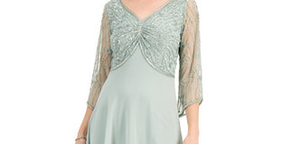 Vestido tubinho com mangas esvoaçantes e detalhes embelezados, tamanho 4, feminino, Adrianna Papell
