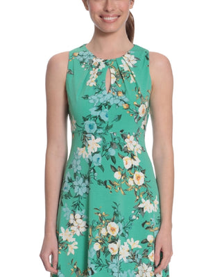 Vestido de malha com estampa floral feminino London Times, verde, tamanho 20W