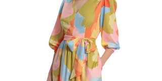 Vestido feminino Adrianna Papell com decote em V e amarração na cintura, azul, tamanho 6