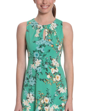 Vestido de malha com estampa floral feminino London Times, verde, tamanho 18W