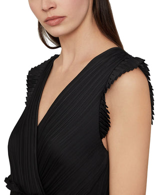 BCBGMAXAZRIA Vestido longo feminino plissado colorblock preto tamanho médio