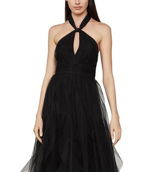Vestido de tule com decote halter feminino BCBGMAXAZRIA, preto, tamanho 12