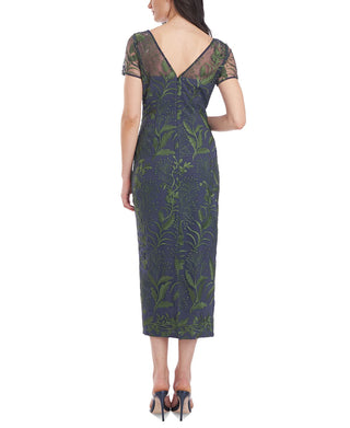 Vestido midi de malha bordada feminino JS Collections, verde, tamanho 10