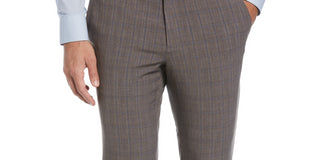 Calça social masculina Perry Ellis Portfolio Slim Fit com frente lisa, cinza, tamanho 36x32