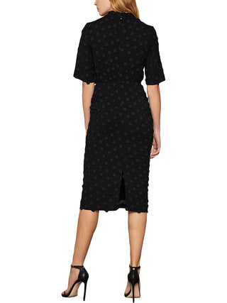 Vestido MIDI Feminino BCBGMAXAZRIA com Gola Simulada e Bainha Preto Tamanho Grande
