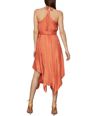 BCBGMAXAZRIA Vestido midi feminino de cetim com bainha de lenço laranja tamanho pequeno