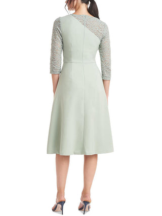 Vestido feminino JS Collections com acabamento em renda e comprimento até o joelho, tamanho 6, verde