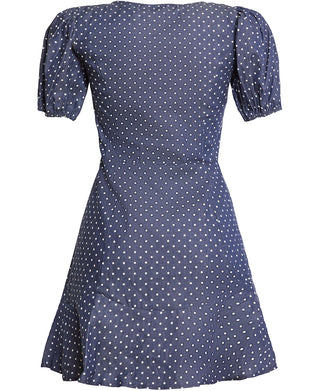 BCBGMAXAZRIA Vestido curto feminino com manga bufante e ajuste evasê, azul, tamanho X-S