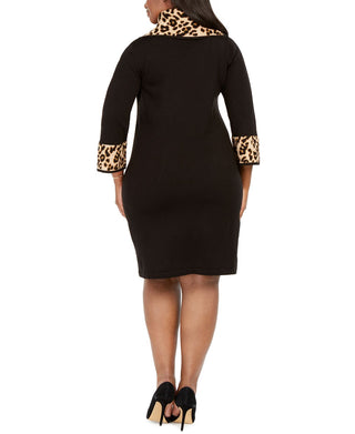 Vestido feminino plus size com estampa animal e acabamento em decote profundo, preto, tamanho 1X, da Jessica Howard