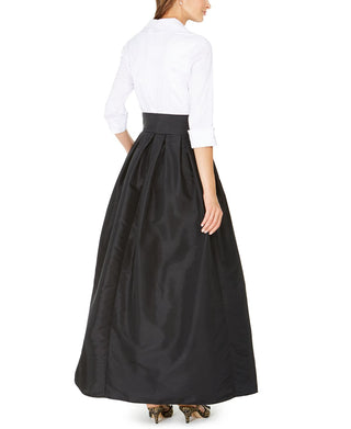 Vestido formal feminino Jessica Howard com cinto, bloco de cores, manga 3/4, gola, maxi fit, flare, branco, tamanho 6, pequeno