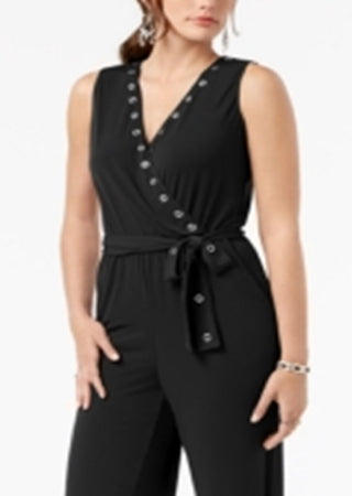 Macacão feminino com cinto e ilhós NY Collection, preto, tamanho pequeno e pequeno