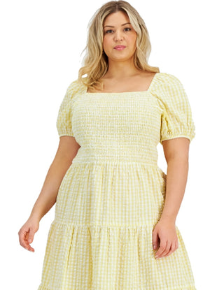 E agora este vestido feminino de algodão em camadas amarelo tamanho 3X
