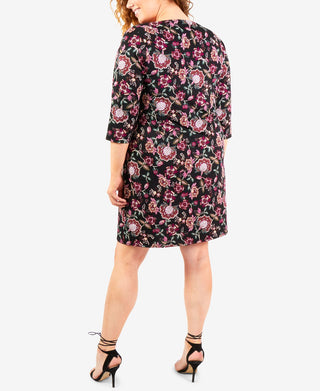 Vestido feminino plus size em malha jacquard com colar, coleção NY - preto/vinho, tamanho 2X