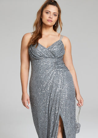 Vestido infantil metálico franzido City Studios, cinza, tamanho 14