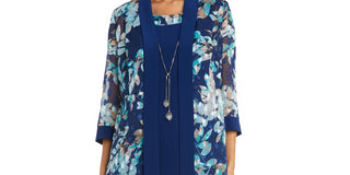 R & M Richards Jaqueta e vestido estampados femininos, azul, tamanho 18W