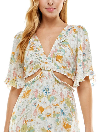 Vestido longo com amarração frontal floral Kingston Junior, azul, tamanho médio