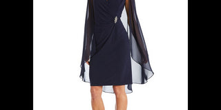 Vestido de capa de chiffon enfeitado feminino R & M Richards, azul, tamanho 16W