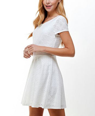 Vestido City Studios Junior de manga curta com ilhós e ajuste evasê, branco, tamanho 1