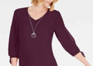 Vestido feminino com mangas amarradas e colar, tamanho vinho, pequeno, XL
