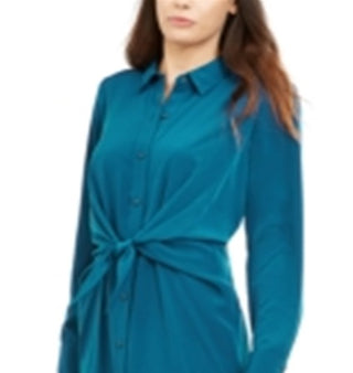 Vestido-camisa feminino Alfani com amarração frontal, verde, tamanho 12