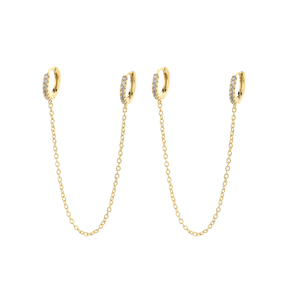 Brincos de corrente dupla Huggie em ouro 14k e prata esterlina com cristais
