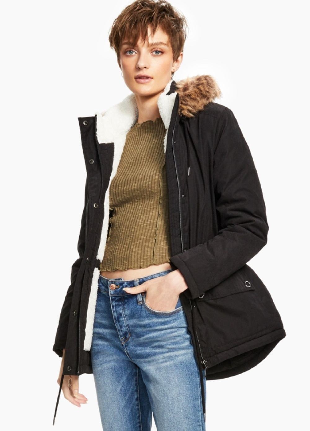 Moletom com capuz Coffeeshop Junior's Faux Trim preto tamanho X pequeno