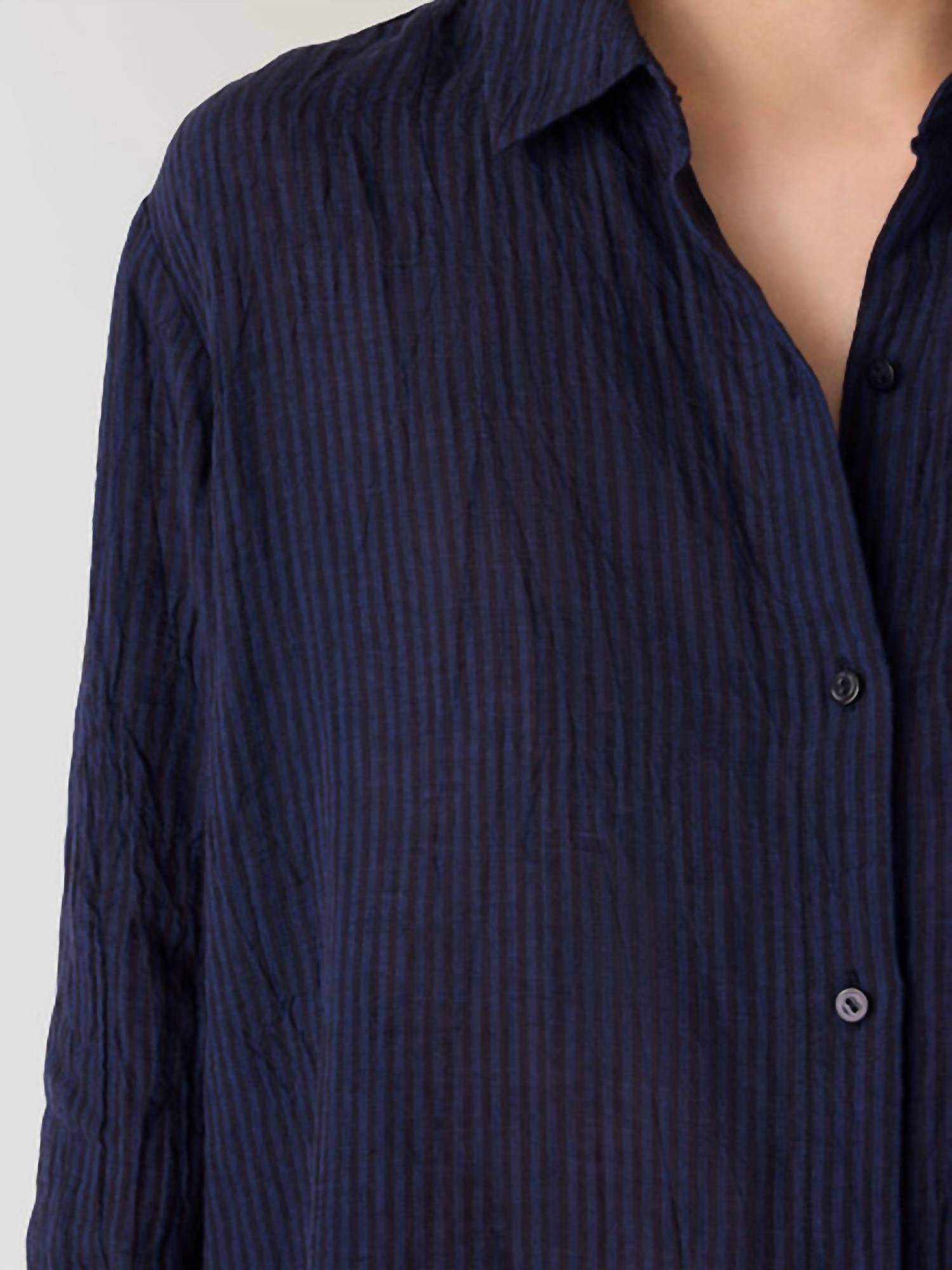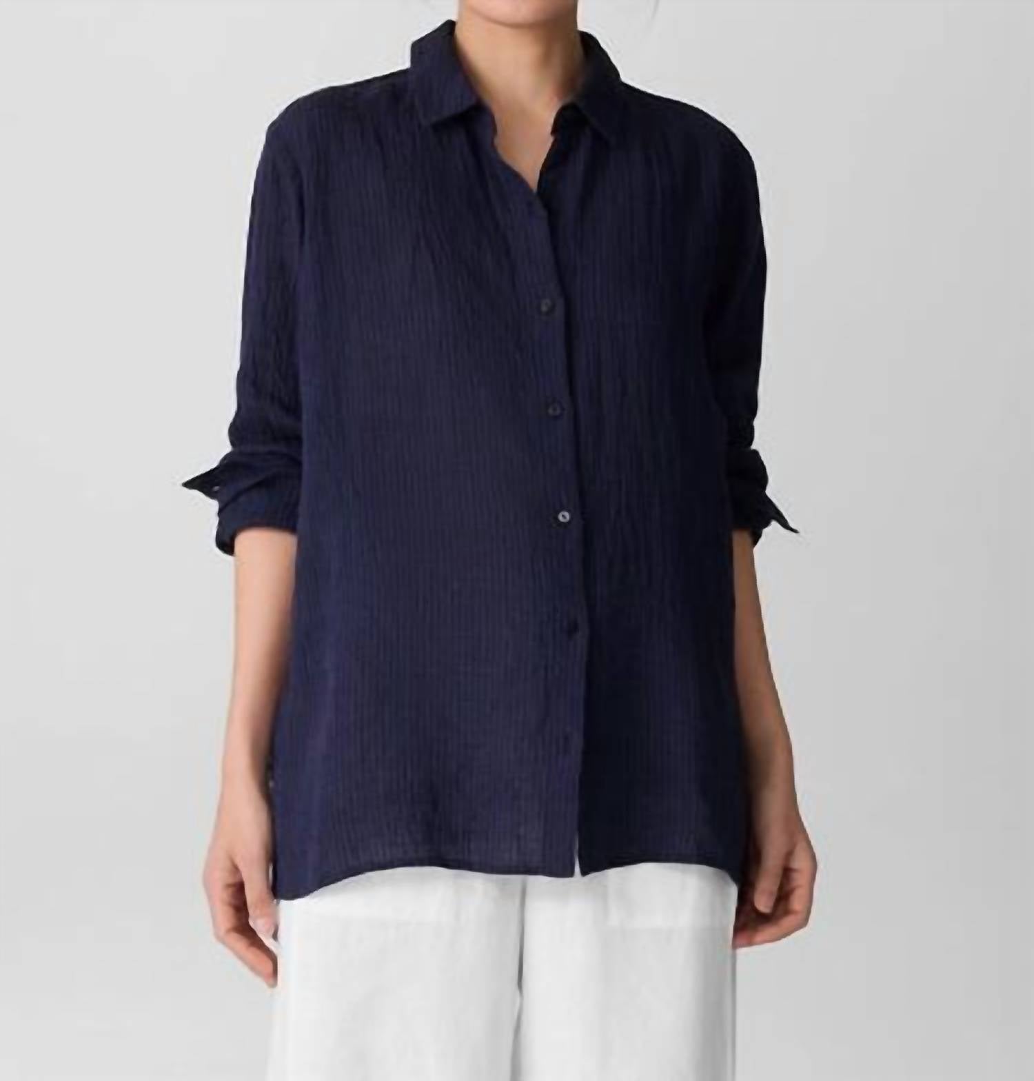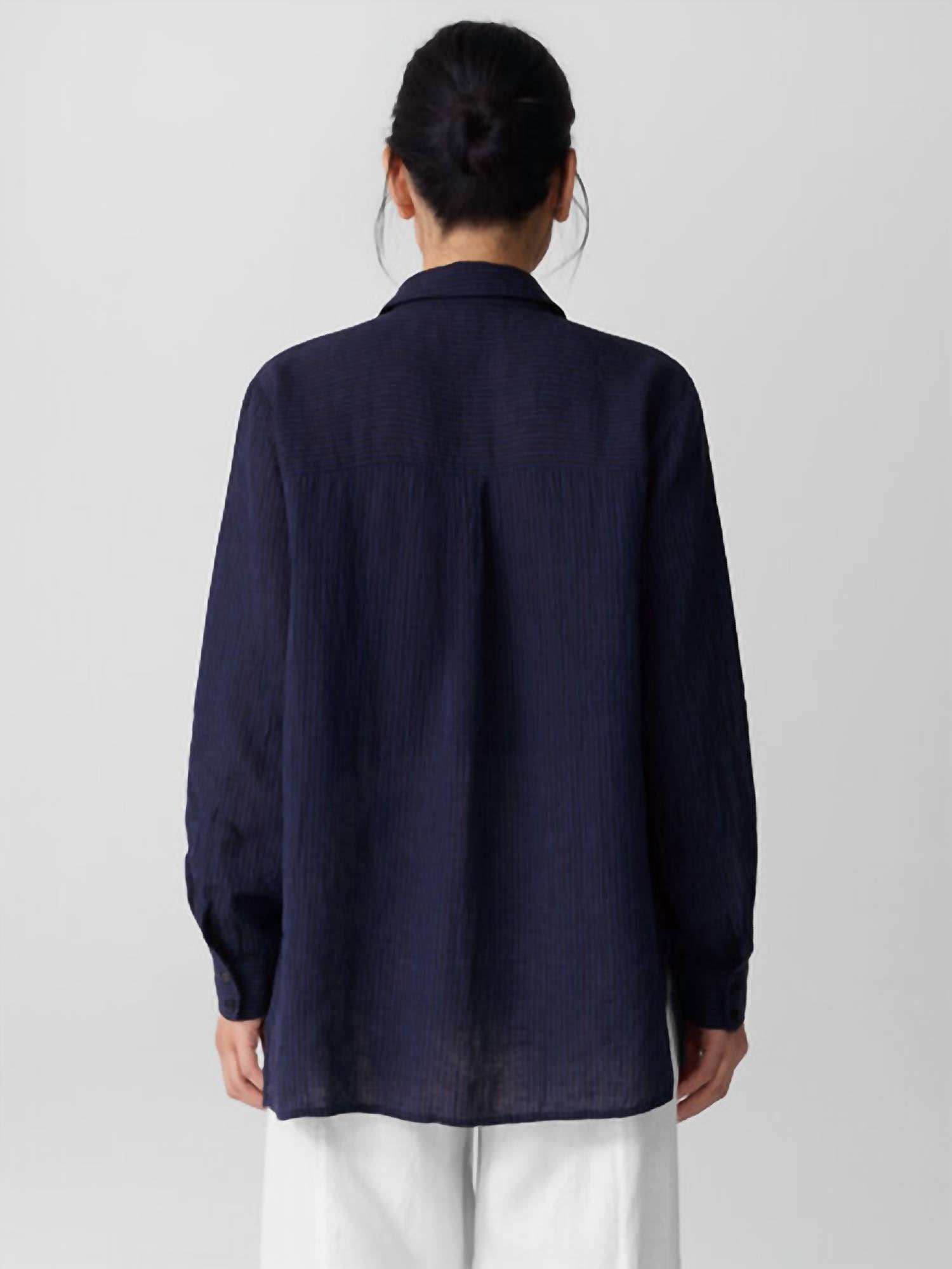 Eileen Fisher - Puckered Linen Stripe Classic Collar Shirt