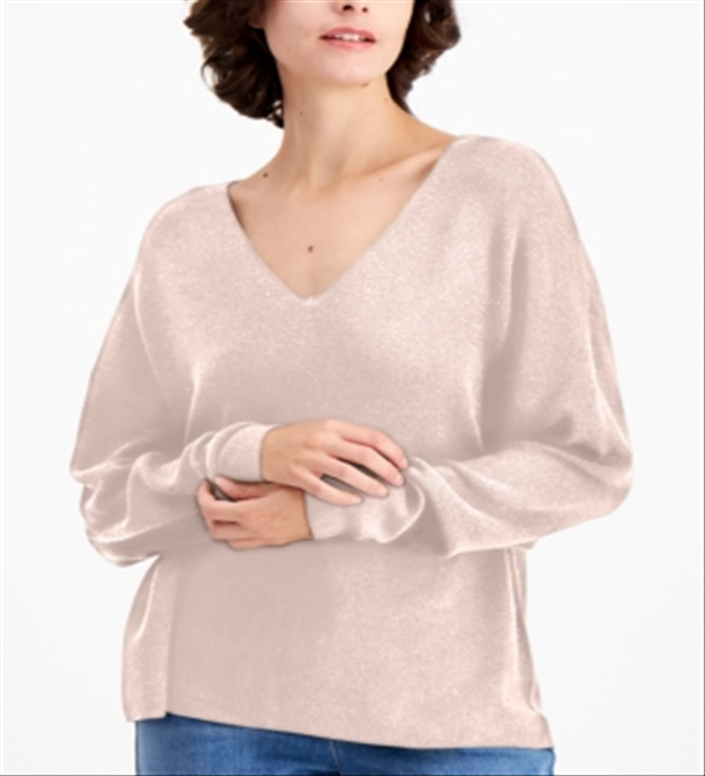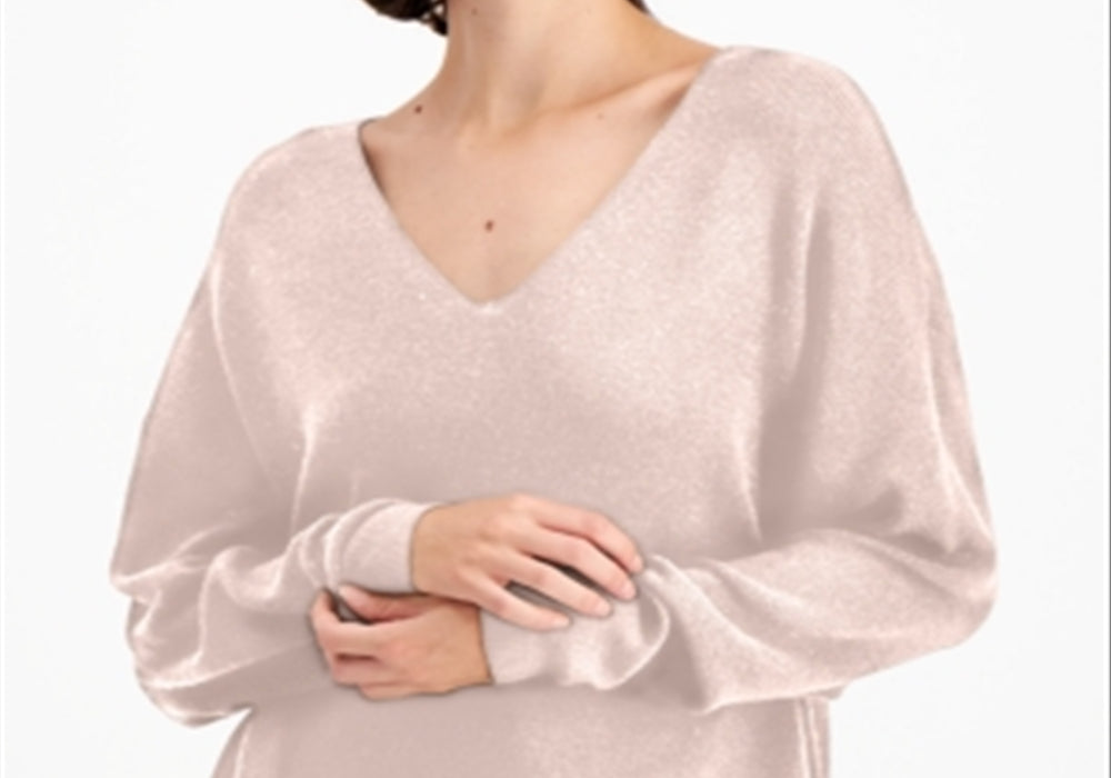 Suéter Eileen Fisher com decote em V e ombros caídos, rosa, tamanho G