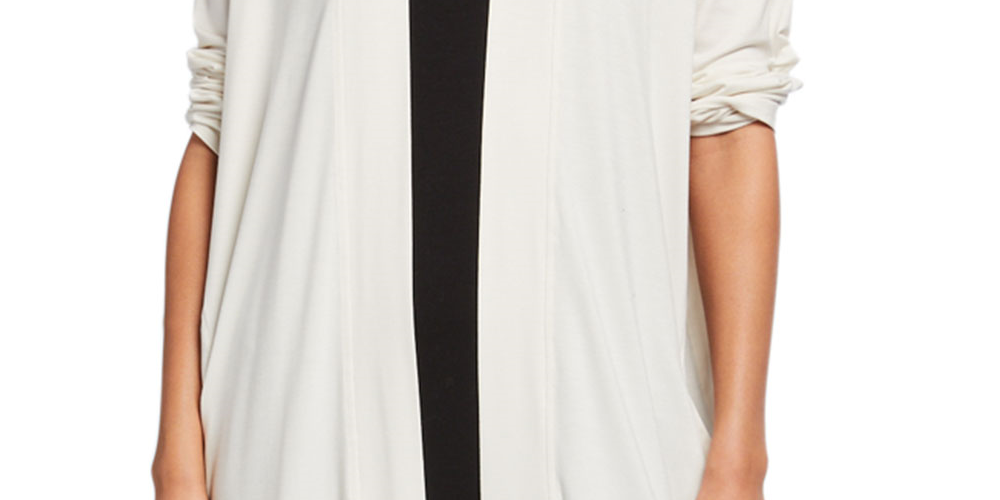 Eileen Fisher Blusa Cardigan Feminina Heather Manga Longa Aberta Suéter Formal Bege Tamanho Pequeno Médio