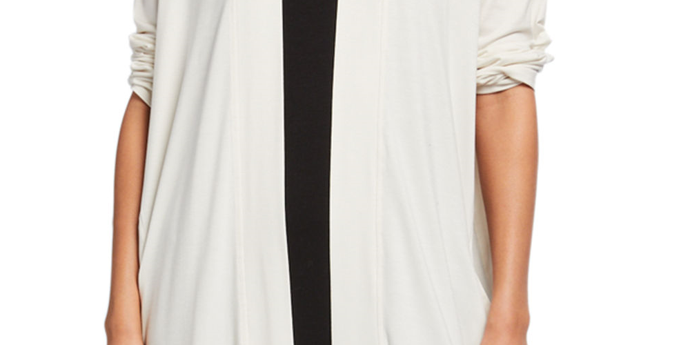 Cardigan feminino Eileen Fisher Tencel com frente aberta, branco, tamanho grande