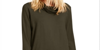 Túnica feminina Eileen Fisher de malha com gola alta, verde, tamanho médio