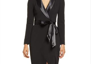 Vestido de smoking Eliza J, manga comprida, preto, tamanho 10