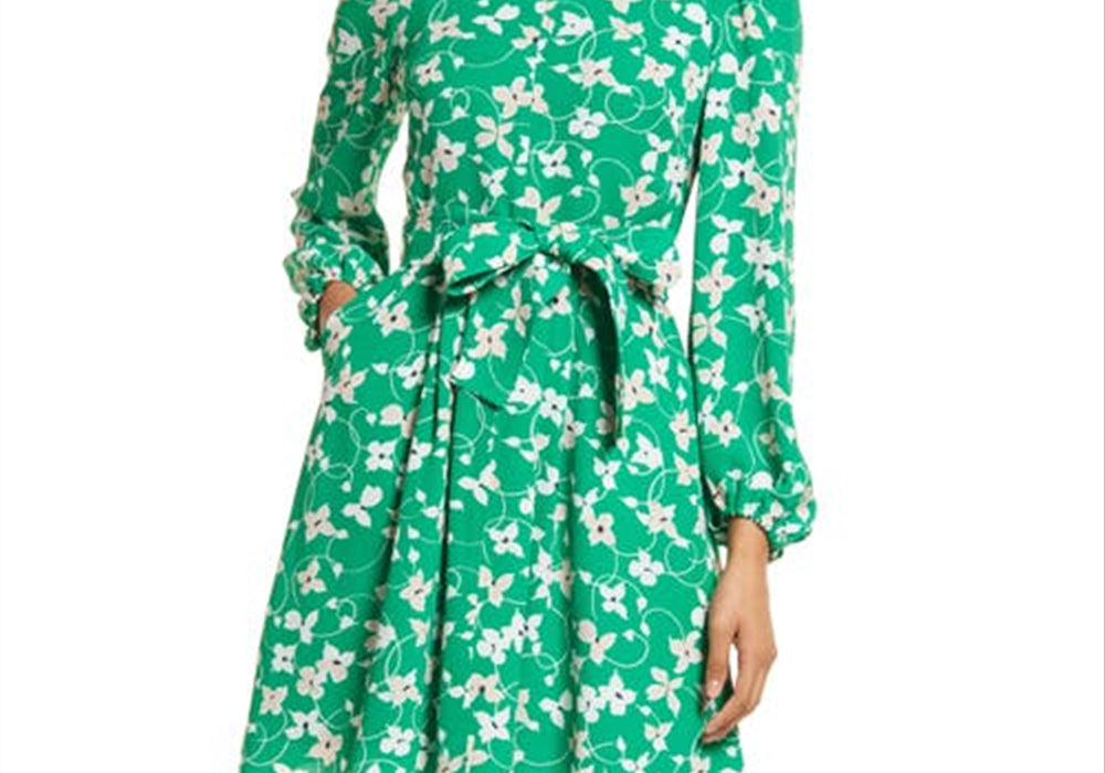 Design floral | Mangas longas | Cor verde | Tamanho 14 | Vendido na Nordstrom | Criado por Eliza J | Material leve | Estilo feminino | Lavável à máquina | Uso confortável.