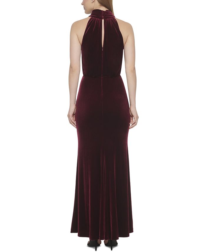 Blusa feminina Eliza J com decote halter e sem mangas em veludo, tamanho 4, vermelho, pequena