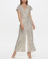 Macacão feminino Eliza J com mangas esvoaçantes e lantejoulas, bege, tamanho pequeno
