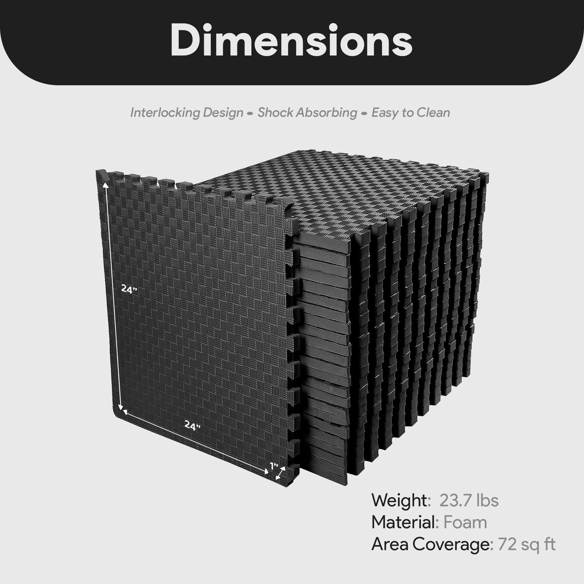 Tapete de exercícios de espuma EVA interligada de 72 pés quadrados da BalanceFrom Fitness, preto