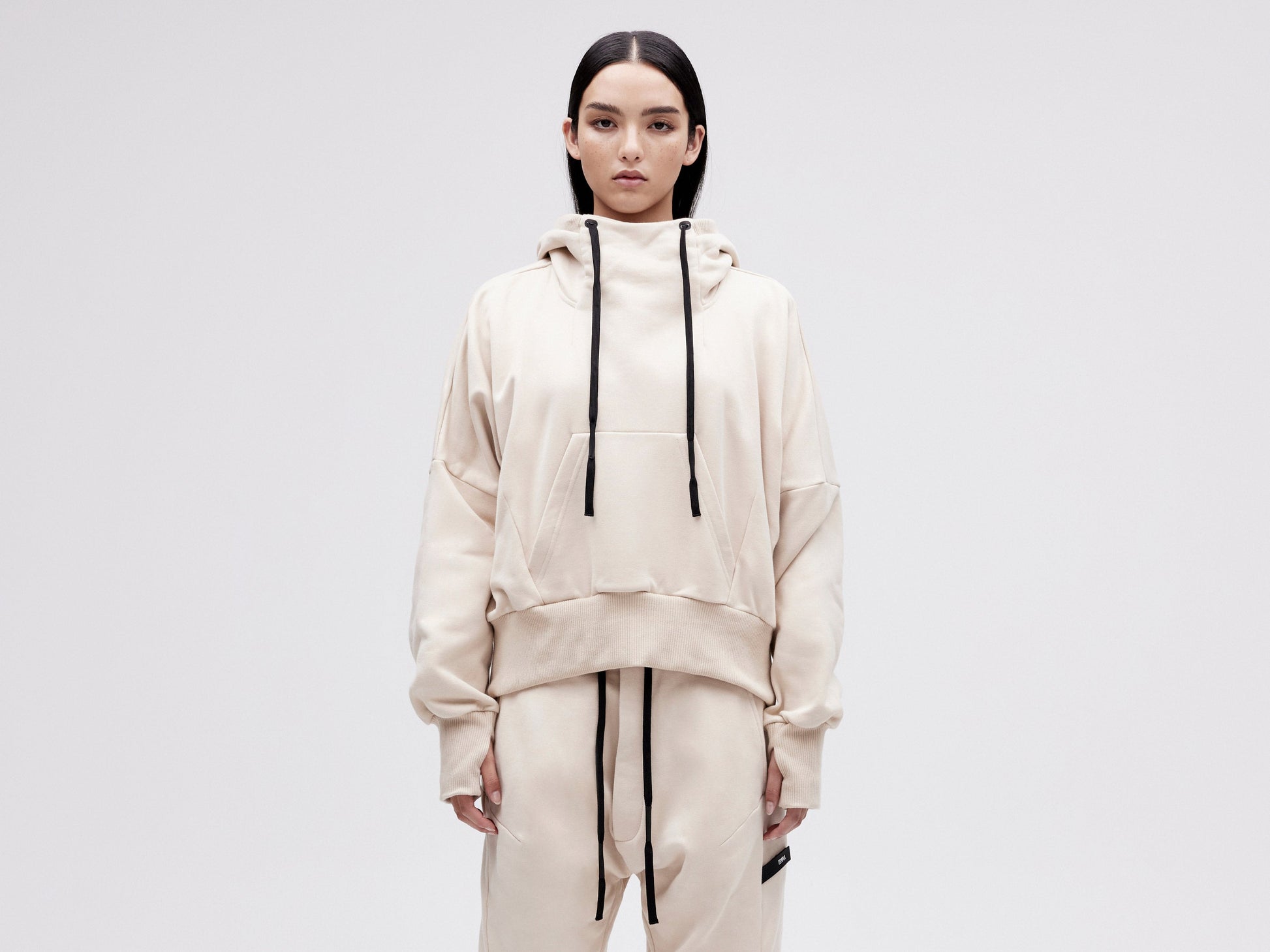 Crafted from luxuriously soft Italian organic cotton fleece, our Cropped Hoodie has been designed with a sporty feminine silhouette. Featuring a billowing back, drop shoulders and edged with ribbing, this hoodie will provide you with the perfect definition and volume where you need it.
