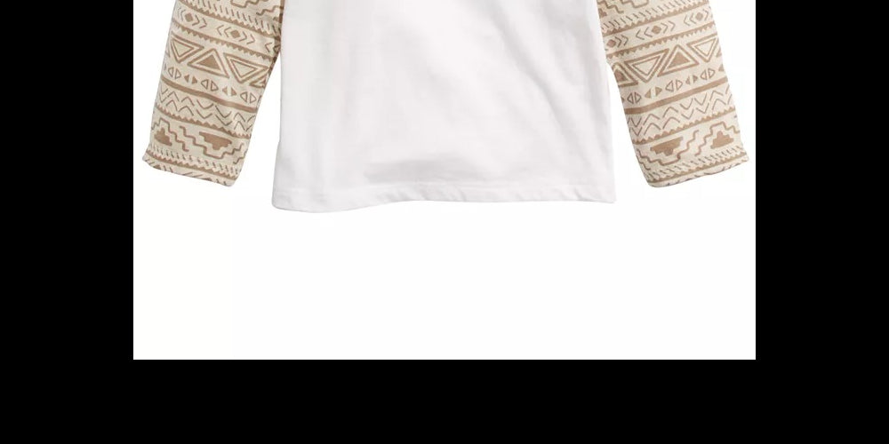 Gola redonda | Mangas estampadas em camadas; estampa gráfica na frente | Algodão/poliéster | Lavável à máquina | Importado