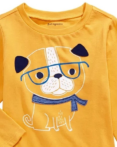 Gola redonda | Motivo de cachorro com óculos na frente | Todo em algodão | Lavável à máquina | Importado