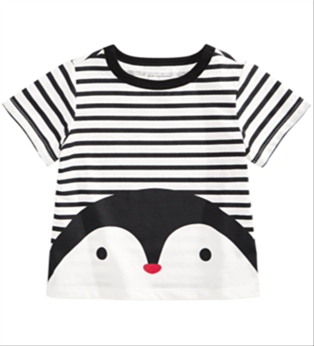 Camiseta listrada de algodão para bebê First Impressions, tamanho 12 meses, branca, com estampa de pinguim