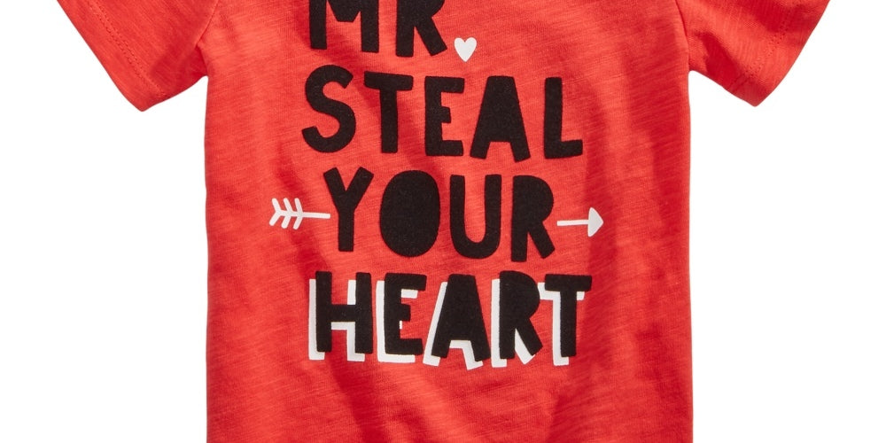 Camiseta de algodão com estampa de coração para meninos First Impressions, vermelha, tamanho 12 meses