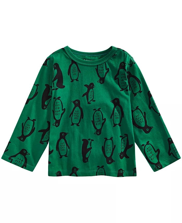 Camiseta de algodão com estampa de pinguim First Impressions para meninos, verde escuro, tamanho 3 a 6 meses