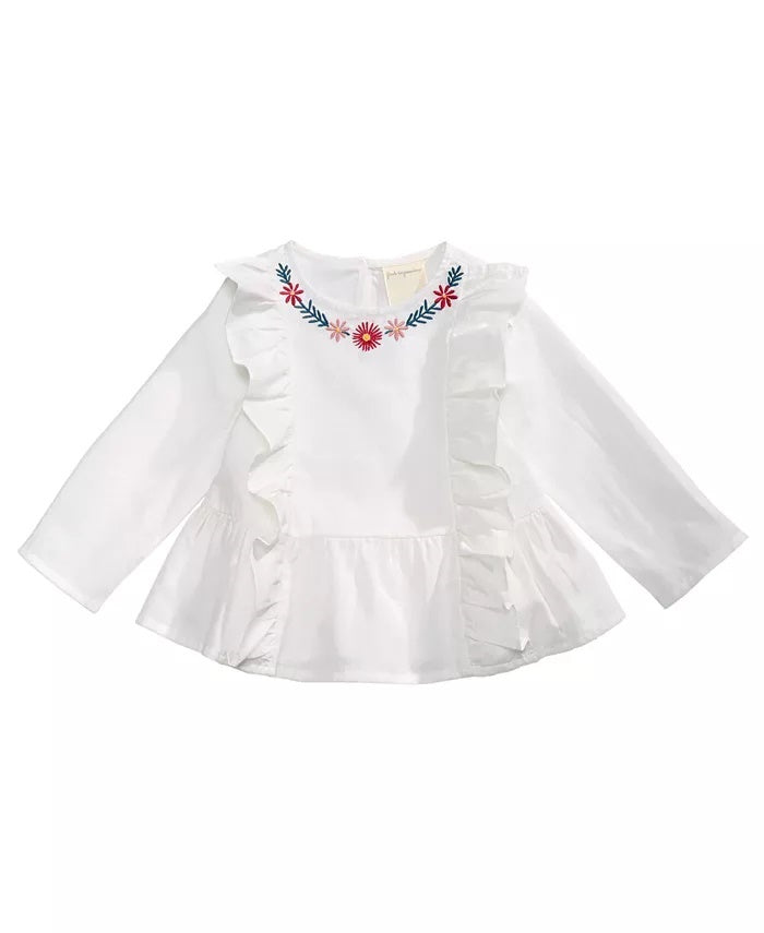 Blusa de algodão com babados e bordado First Impressions Baby Girls, branca, tamanho 12 meses