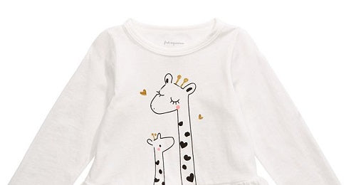 Blusa Peplum Girafa de Algodão para Bebê Menina First Impressions, Branca, Tamanho 24 MOS