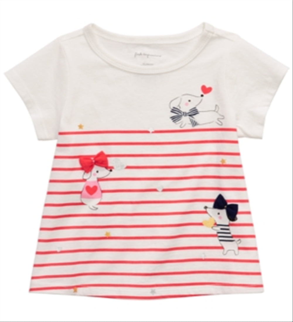 Camiseta listrada com estampa de cachorro First Impressions para bebê menina, branca, tamanho 3-6 M