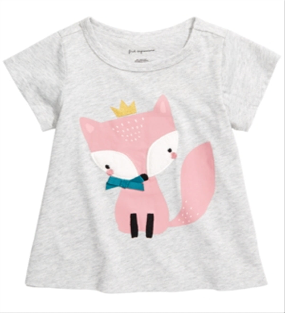 Camiseta infantil Fox para meninas First Impressions, cinza, tamanho 6-9 meses