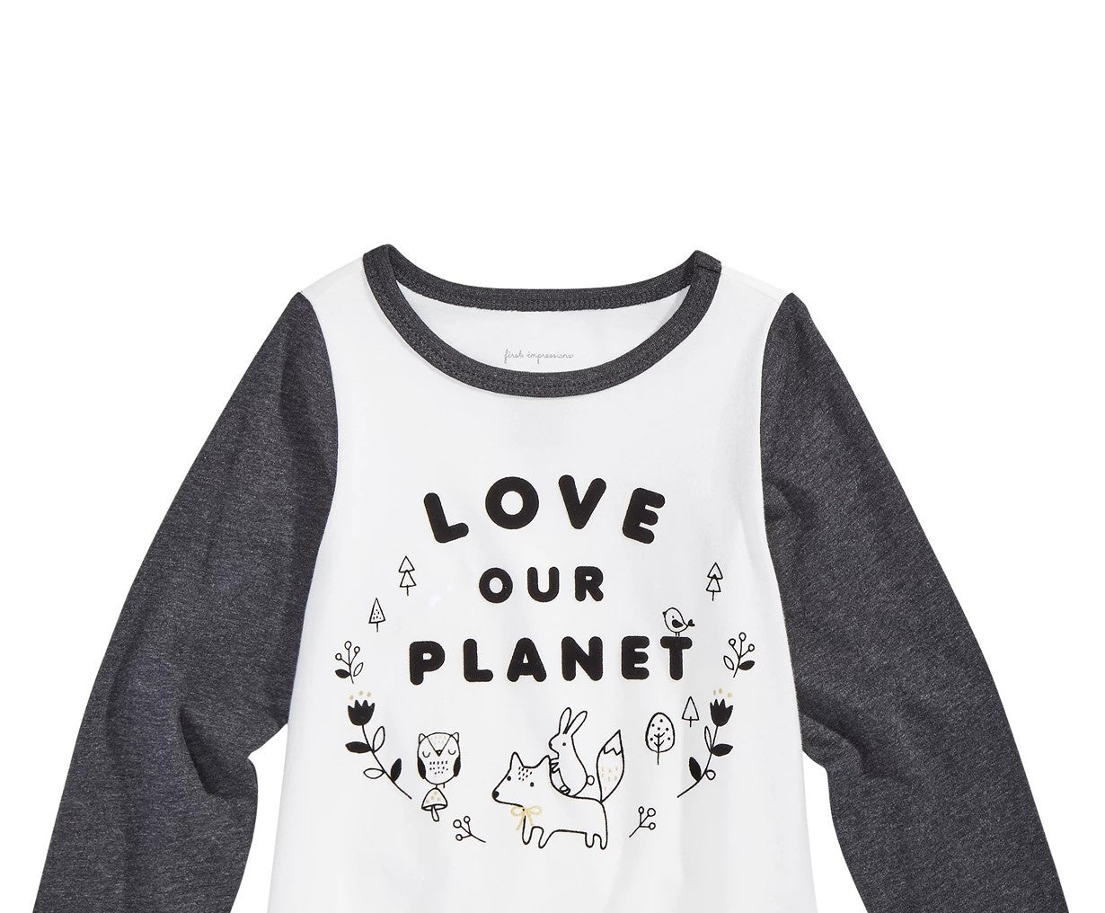 Gola redonda | Mangas com blocos de cores | Estampa gráfica na frente | 100% algodão | Lavável à máquina | Importado
