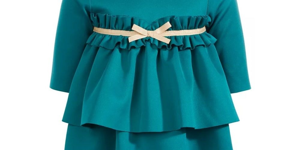 Fechos de botão na parte de trás do pescoço | Gola redonda | Laço na frente; saia com babados | Inclui capa de fralda combinando | Scuba: poliéster/elastano; capa de fralda: poliéster/algodão | Lavável à máquina | Importado