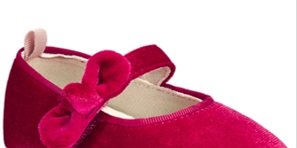 um lindo detalhe de laço estiliza veludo macio com esses sapatos baixos desde as primeiras impressões