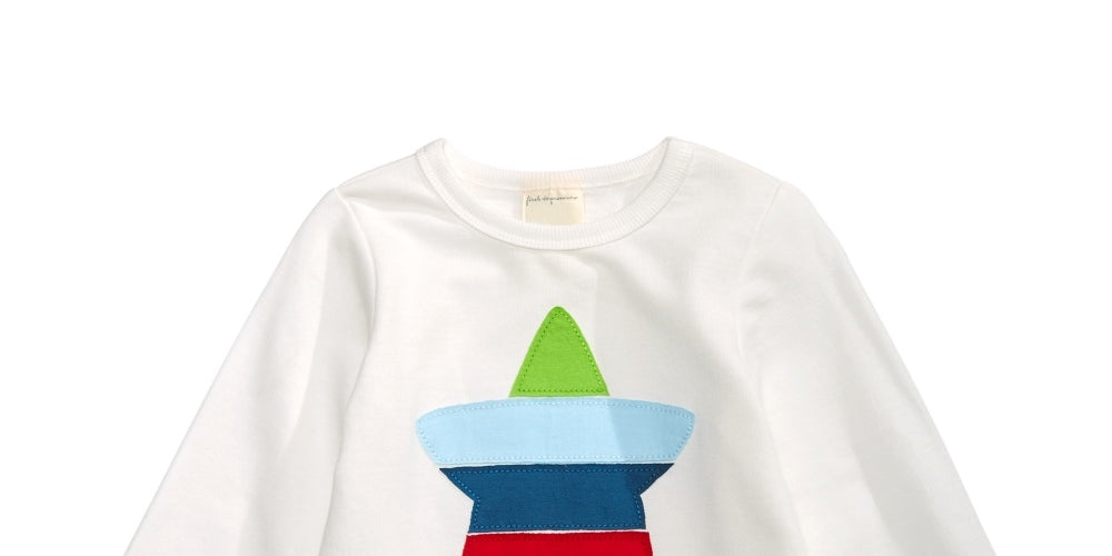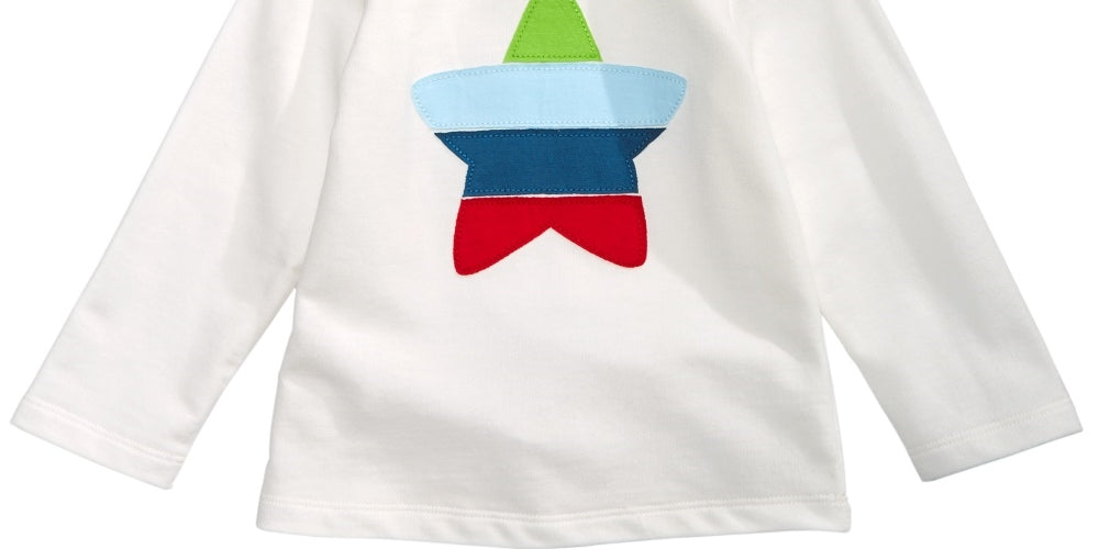 Gola redonda | Aplique de estrela na frente | Algodão/poliéster | Lavável à máquina | Importado